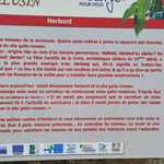 Nous empruntons le chemin des Ayes, la vallée est très belle avec en vue le site Gallo-romain, une énorme pierre nous défie et nous essayons de lui trouver différentes formes de têtes, les arbres se reflètent langoureusement sur la Vonne qui est bien paisible. Nous arrivons au village de Herbord qui semble bien désert, beaucoup de maisons sembles inhabitées. Son nom est mystérieux, origine liée au nom d’un homme germanique Helbold,